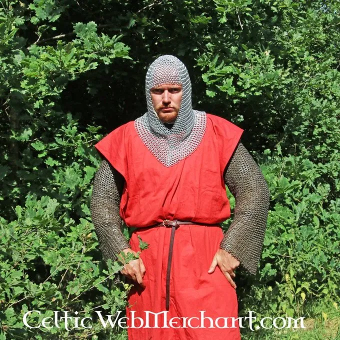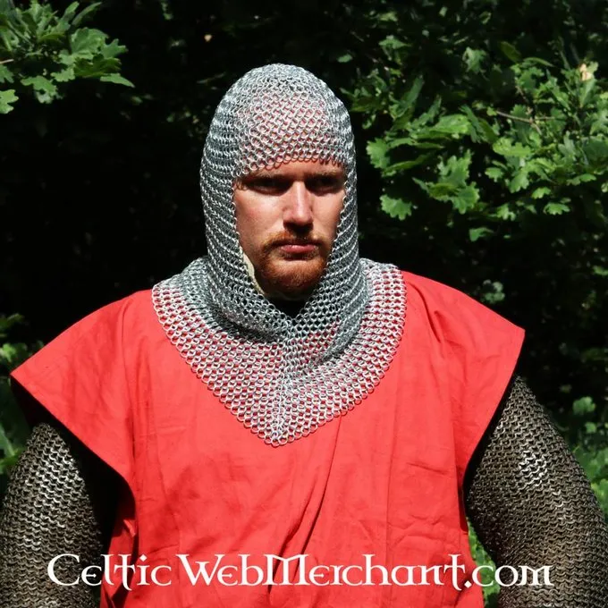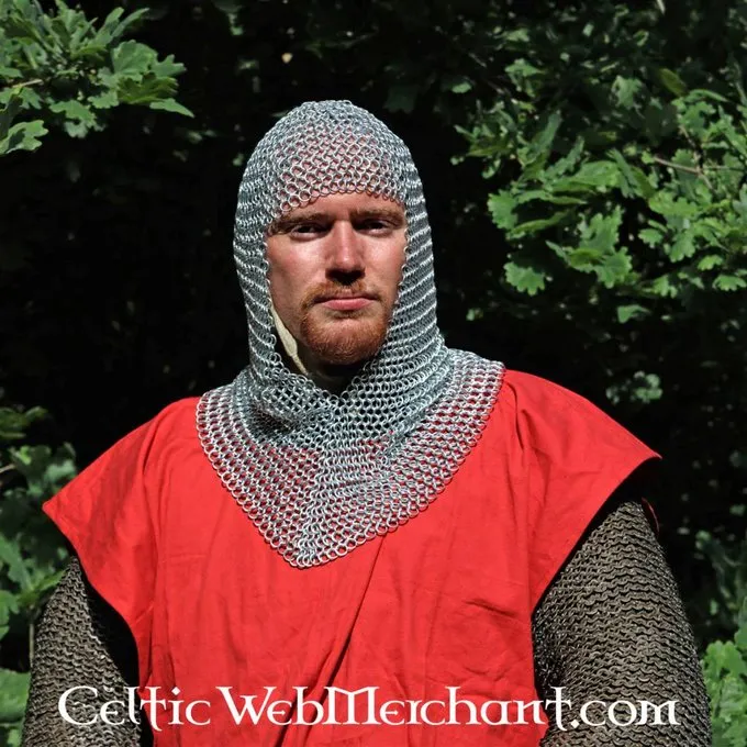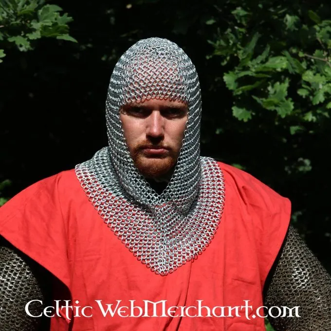Cette coiffe est faite de 1,6 mm d’épaisseur anneaux ronds butée zingué avec un diamètre intérieur de 9 mm. Ils sont tissés quatre en un. La coiffe a un décolleté triangulaire.