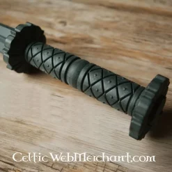 Cette épée de formation est faite de polypropylène durable. Il a une longueur de 112 cm avec une lame de 86 cm et une épaisseur de 25 mm. L’épée pèse environ. 890 g et est parfaitement adapté pour le réchauffement-ups et commençant épée-combattants.