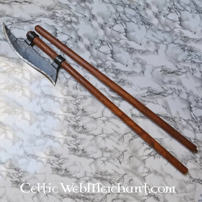 Détails de produit: Longeur: 180 cm / Dimensions de fer: 41×13 cm / Matériel: EN45 acier à ressort / Tranchant: semi-tranchant / Hampe incluse: oui / Basé sur un original historique: oui /