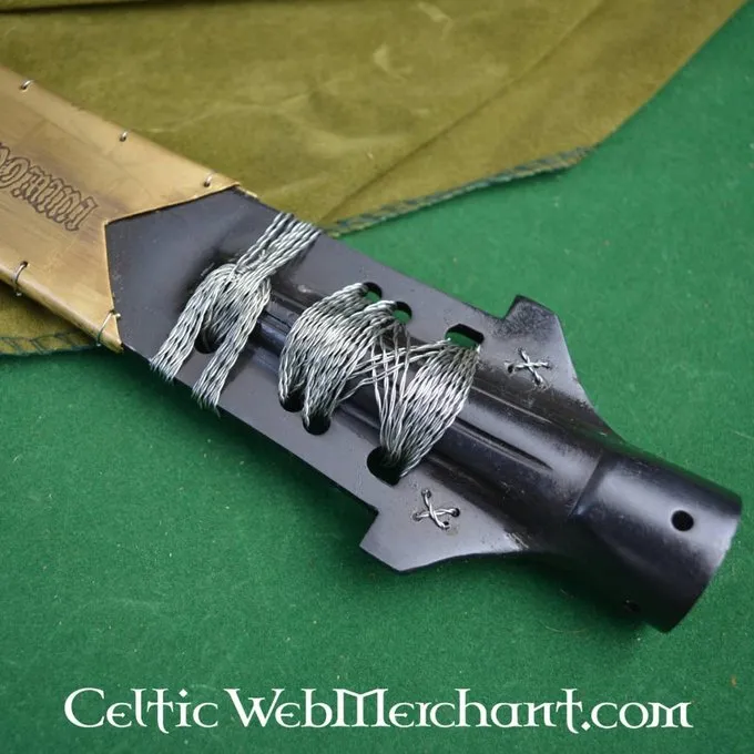 Détails de produit: Longeur: 47 cm / Poids: 950 g / Dimension d’oeil: 2,5 cm / Matériel: En45 acier à ressort dureté 48-50 HRC. / Tranchant: tranchant / Hampe incluse: non / Basé sur un original historique: oui /