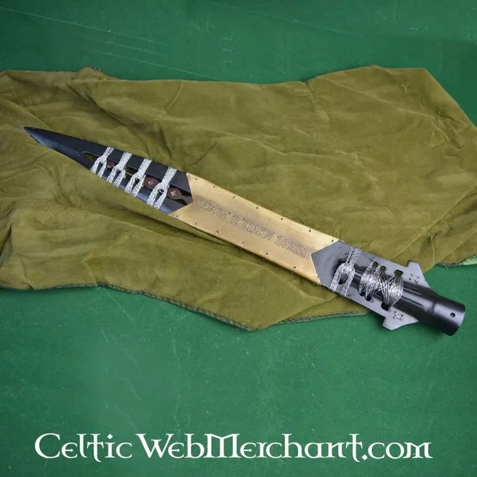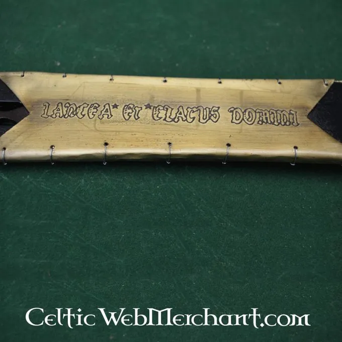 Ceci est une réplique de la bekendde lance sainte aussi connu comme Spear of Destiny. L’original peut être vu dans la Hofburg à Vienne. Au 10ème siècle, les empereurs romains saints dans la possession de la lance. La bande d’argent avec l’inscription « Nail seigneur» était en fait en 1084 par Henri IV. En 1273, a été utilisé pour la première Lance cours couronnements. 1350 Charles IV avait un manchon d’or sur l’argent chargé de l’inscription Lancea et clavus Domini (Lance et ongles du Seigneur). Cette vleugelspeerkop est enveloppé avec du fil d’argent et un tube de laiton et est emballé dans un tissu de velours, Il est fait d’acier au carbone. La longueur totale est de 47 cm et le poids est d’environ 950 grammes. Cette lance est fourni sans arbre.