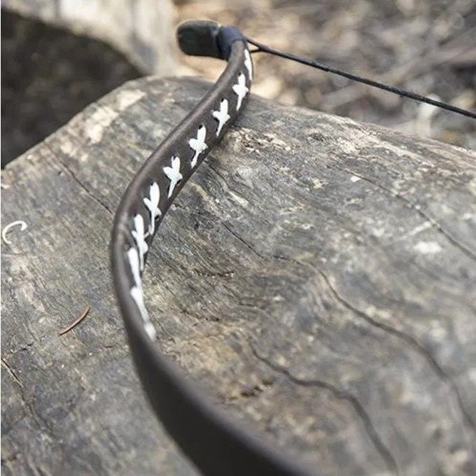 Cet arc recourbé est fait de fibre de verre de couleur bois. son arc souple a une prise en velours. Les extrémités de cet arc sont en bois. L’arc est livré avec une corde et un étui.