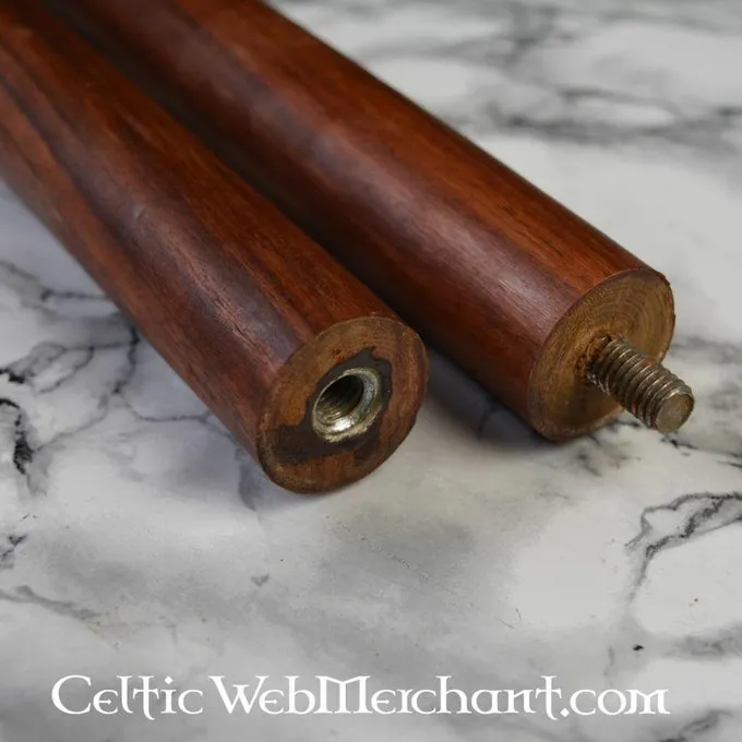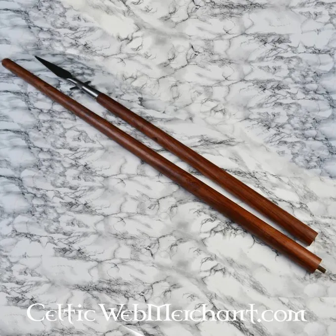 La longueur de cette lance Viking est de 220 cm et la longueur de la pointe est de 40 cm. La tige en bois au milieu est vissé.
