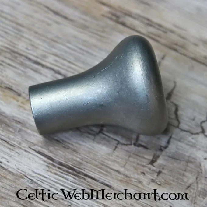 Ces kurkpommel en acier inoxydable a été utilisé à la fois comme anderhalfhanders sur eenhanders. Le pommeau est de 6,5 cm de haut, a un diamètre de 5 cm et pèse 446 grammes.