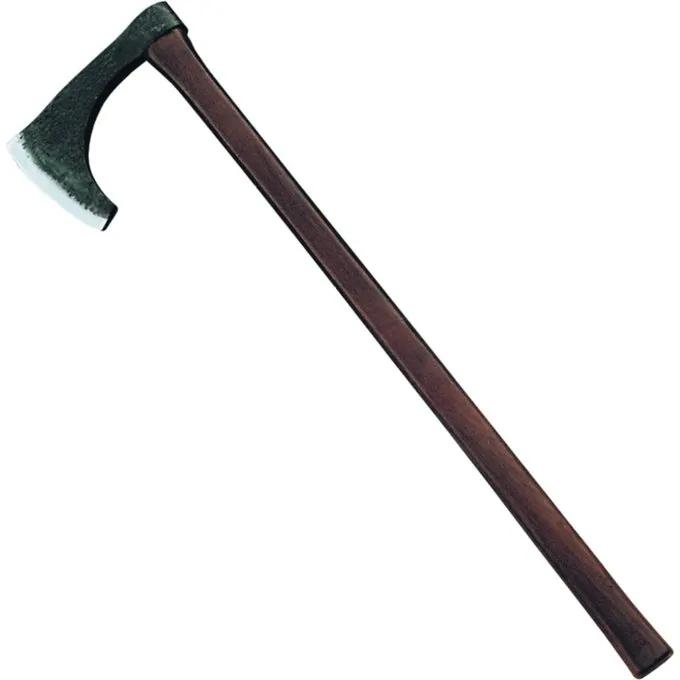 Cette hache est livrée avec un manche en bois foncé. La lame est en acier au carbone avec un aspect forgé à la main, ce qui en fait une belle reproduction historique.