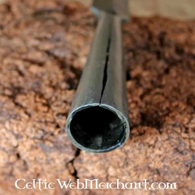 Beaucoup de premiers fers de lance médiévales ont été faites d’acier damas. La pointe a été fabriqué à partir de plusieurs couches d’acier qui ont été entrelacés. Ce fer de lance est authentiquement fait. Ce est une réplique d’un fer de lance germanique South 6th siècle, mais des originaux semblables se est produite jusqu’à ce que le 10ème siècle.