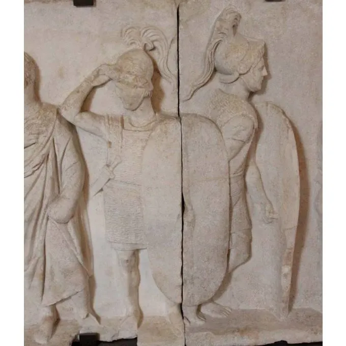 Ce hamata lorica est une réplique d’un original à partir du 1er siècle de notre ère. Hauberts de ce genre ont été portés par les légionnaires entre le 2ème siècle avant JC et le 3e siècle de notre ère.